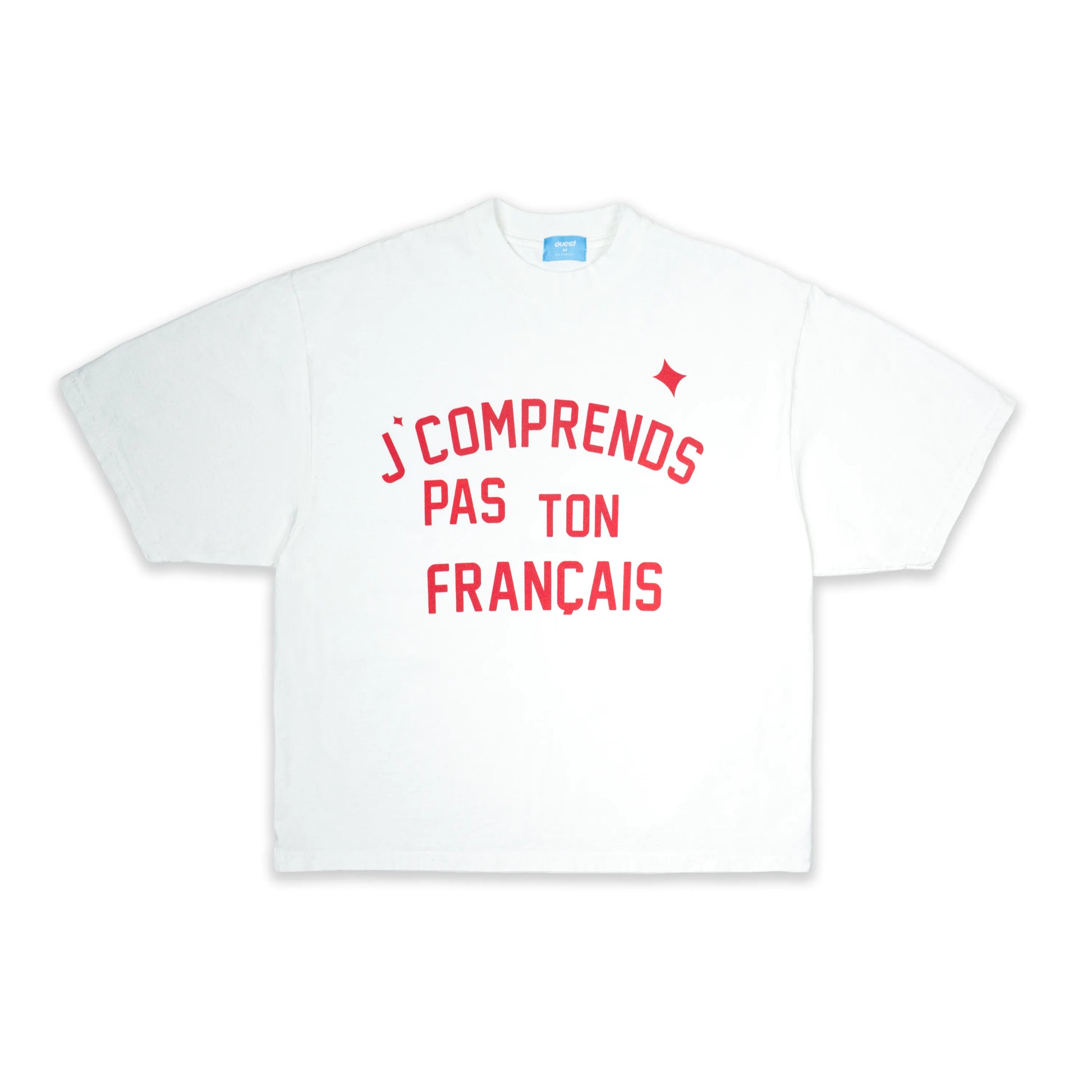 T-SHIRT BOXY OVERSIZED "J'COMPRENDS PAS TON FRANÇAIS" - BLANC ET ROUGE
